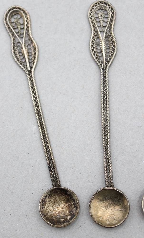 Set Münzlöffel, filigran, wohl Türkei, versilbert, ca. L-10 bis 11cm