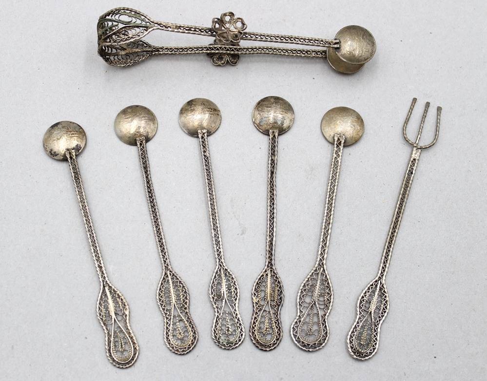 Set Münzlöffel, filigran, wohl Türkei, versilbert, ca. L-10 bis 11cm [1]