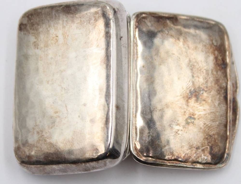 Silber-925- Pillendose mit Hammerschlagdekor, H-1,1 cm, 3x4 cm, ca. 16,5 gr. [1]