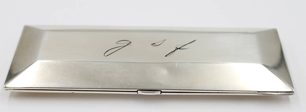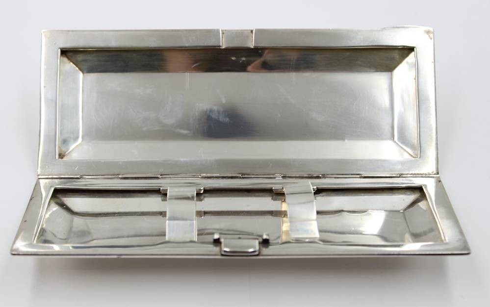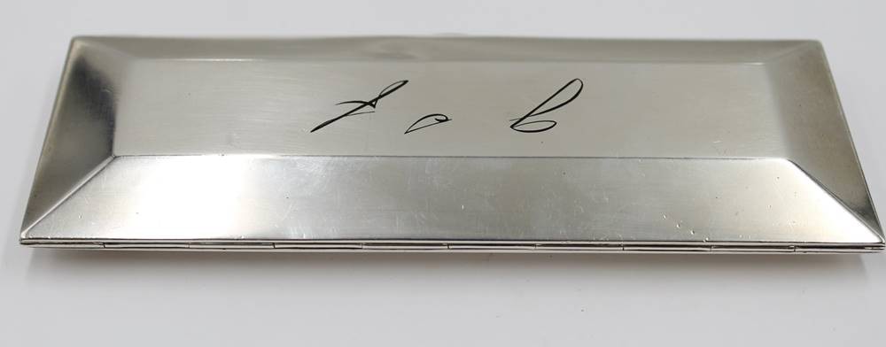 Silber-Etui, Brille?, älter, Front mit Monogramm, 221,5gr., div. Druckstellen, ca. 16 x 63,5cm [1]
