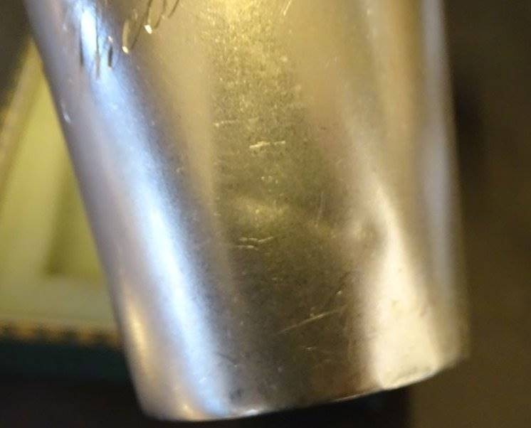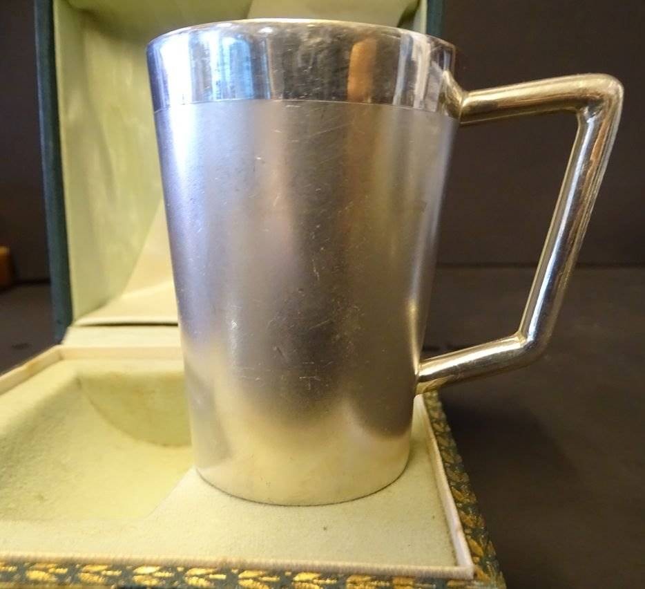 Silberbecher -800- mit Namensgravur "Thea" in Kasten, kl. Dellen, H-7,5 cm, 65 gr. [1]