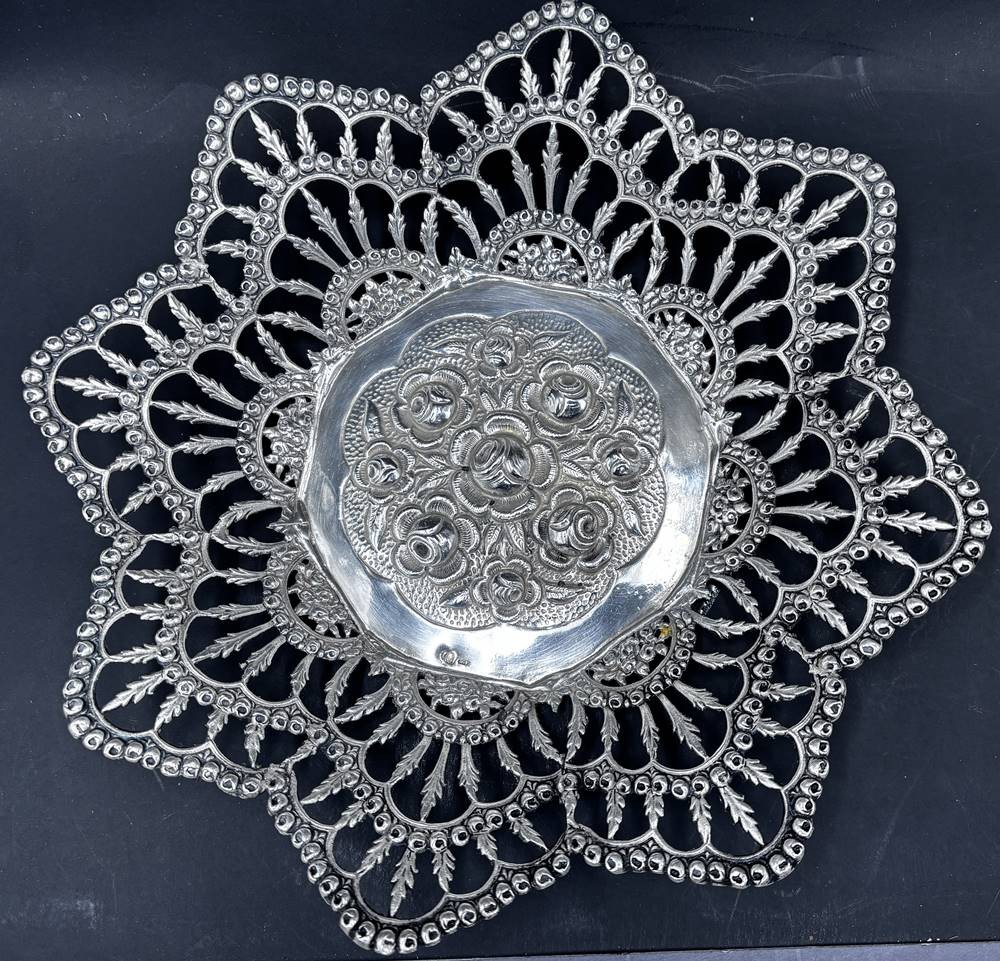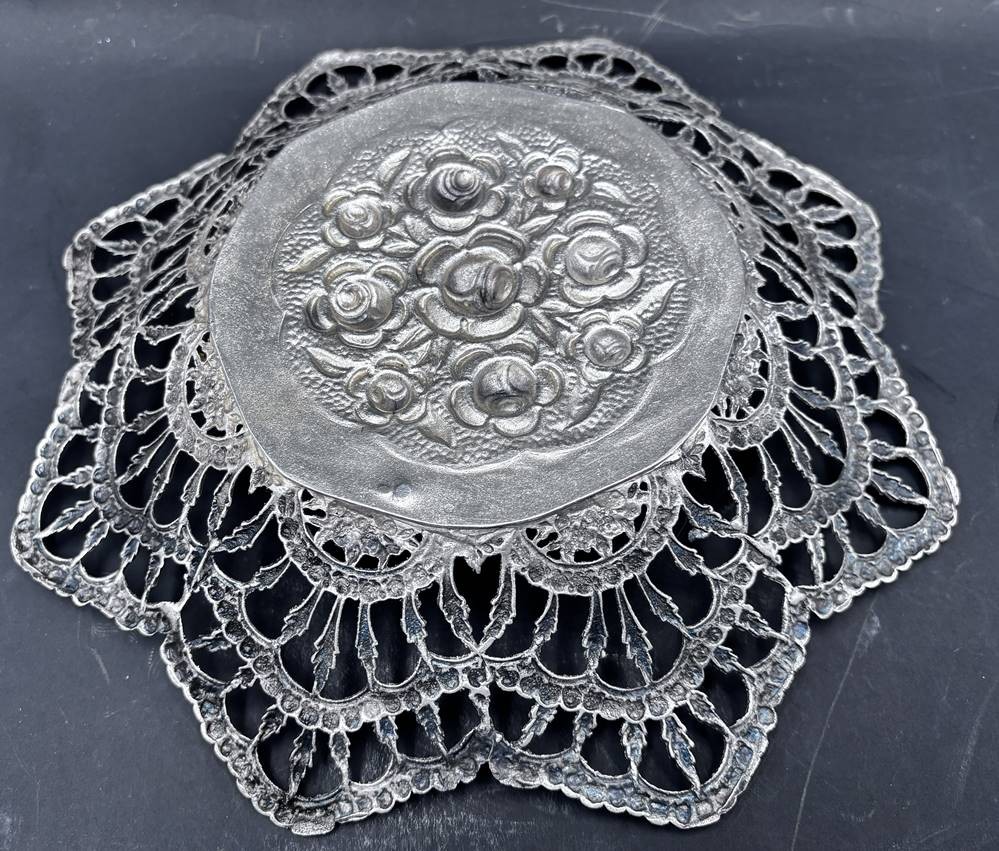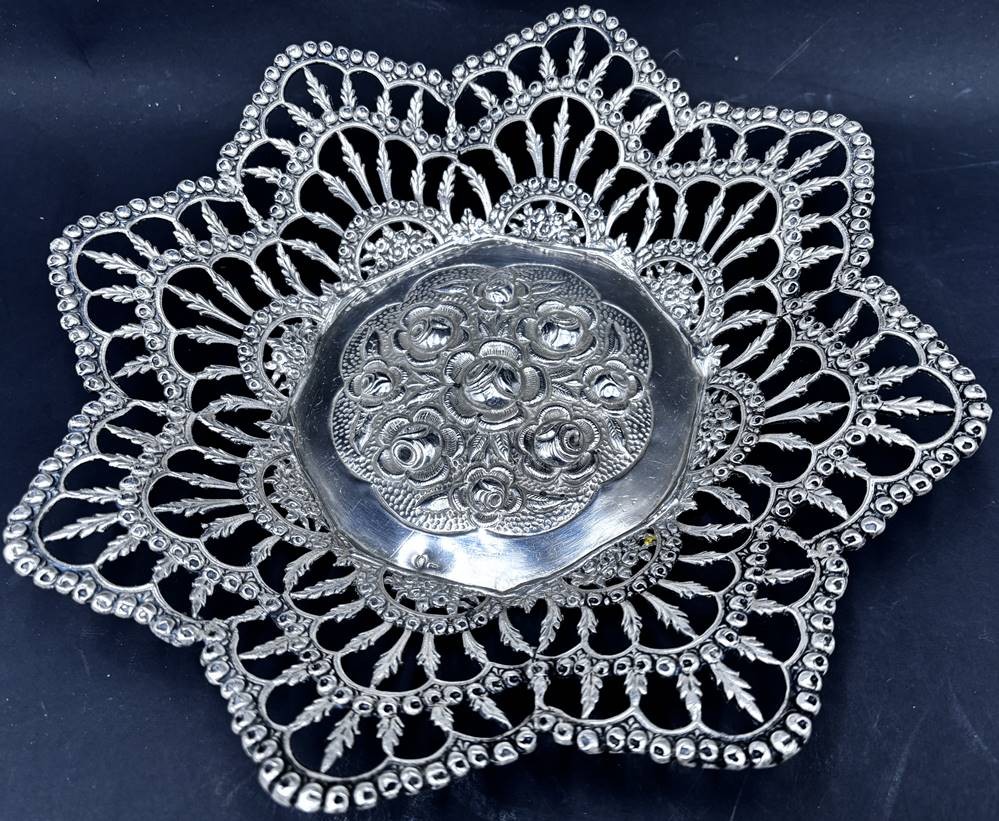 sternförmige Durchbruch-Silberschale, wohl Frankreich?, H-5 cm, D-25 cm, 337 gr.