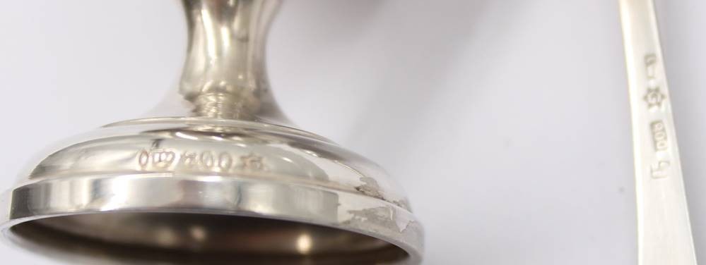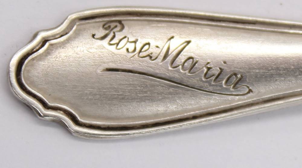 Taufgeschenk, Eierbecher und Löffel, 800er Silber, Gravur "Rosemaria", datiert 1925, in Kasten (riecht streng) [1]