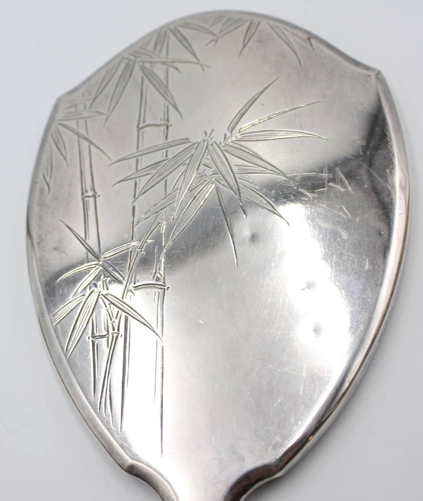Toilettenset, Sterling, Handspiegel, 2 Bürsten und Kamm, Japan, Bambusdekor, Kamm beschädigt, Spiegel L-29cm [1]