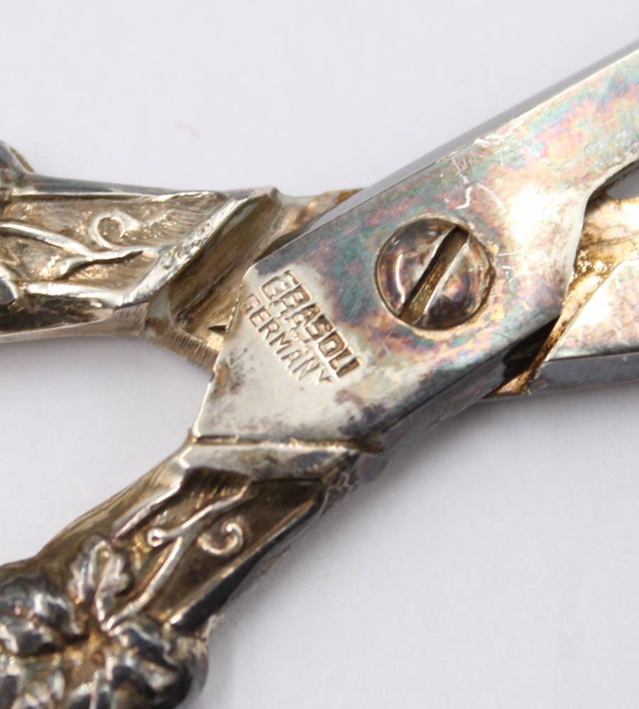 versilberte Traubenschere, Reliefdekor, ca. L-15,5cm
