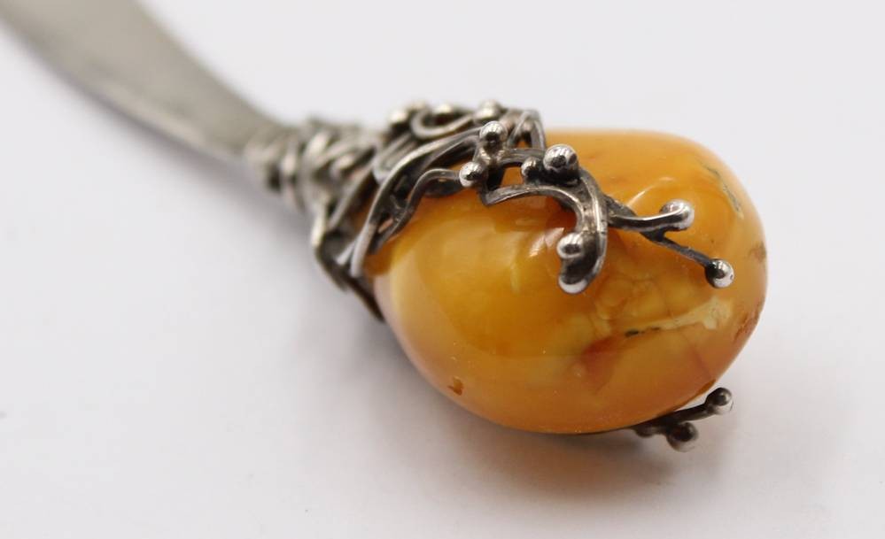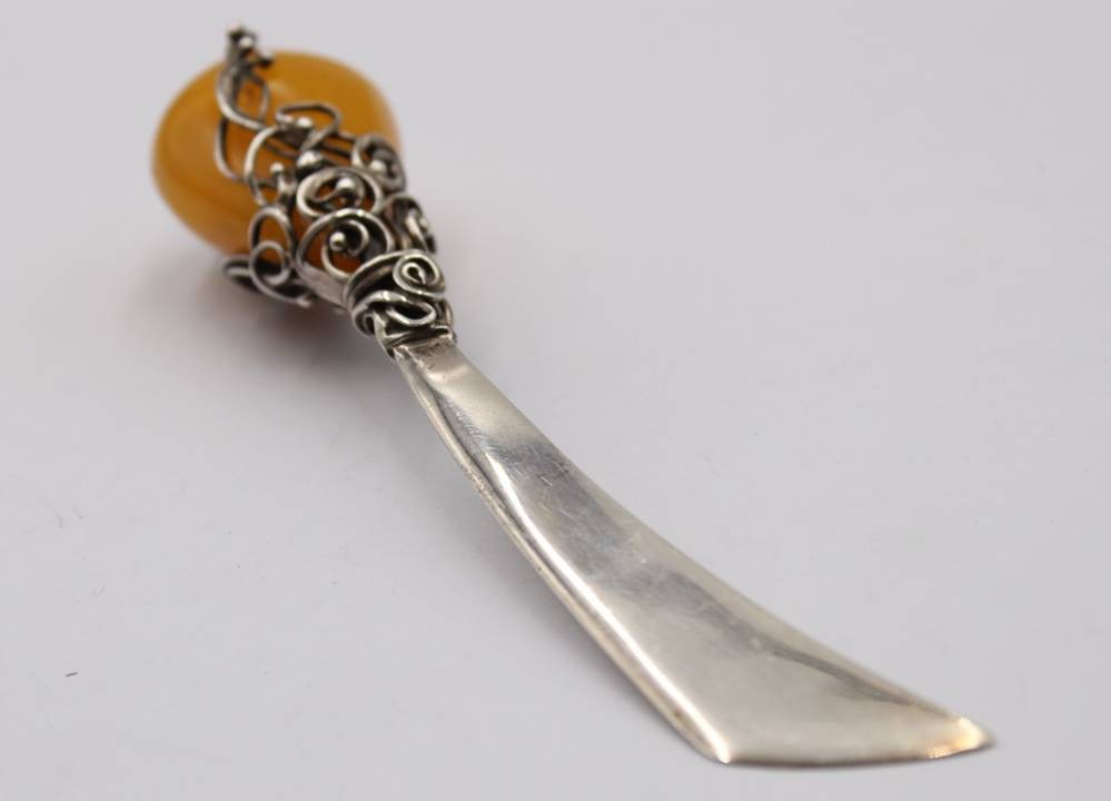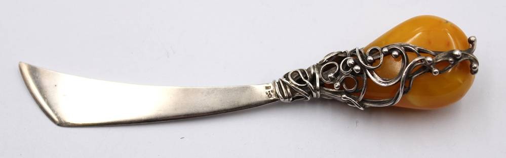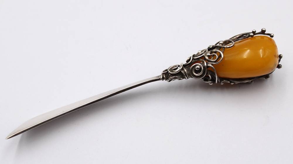 wohl Brieföffner, Griff aus Butterscotch-Bernstein mit kunstvollen Silberverzierungen, 925er Silber, zus. 27,2gr., L-13,5cm [1]