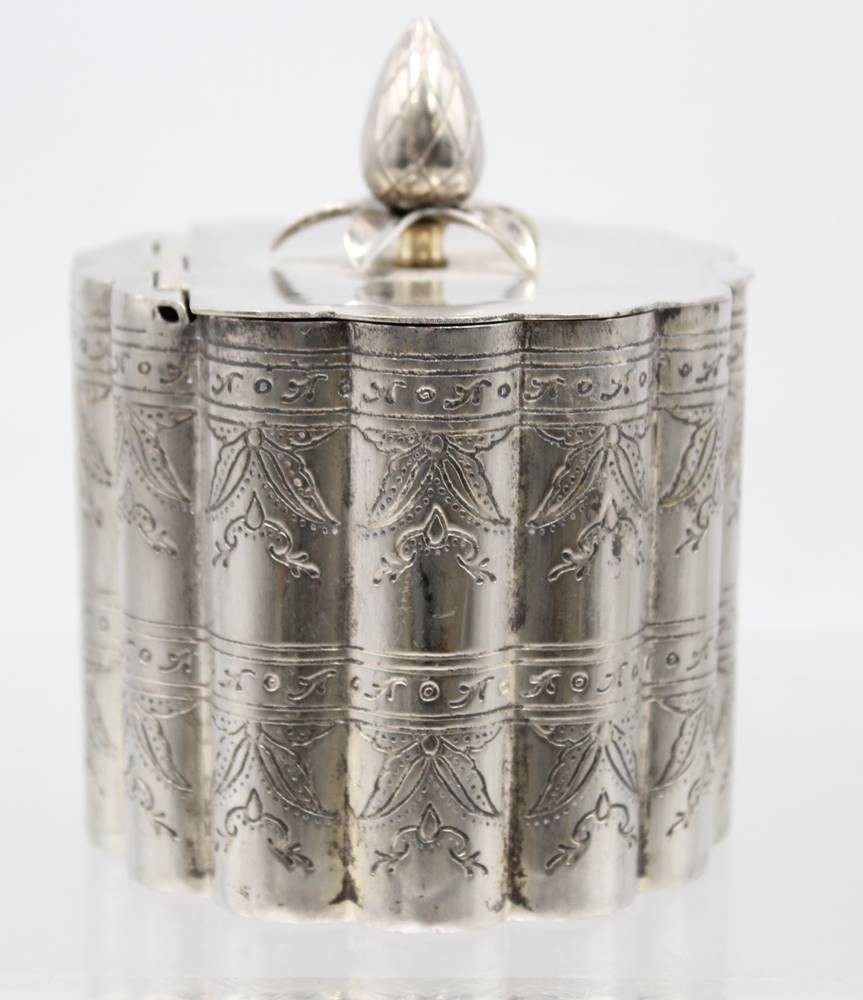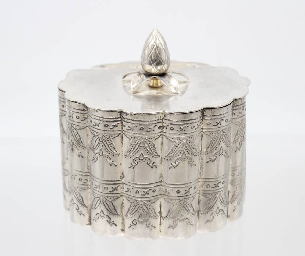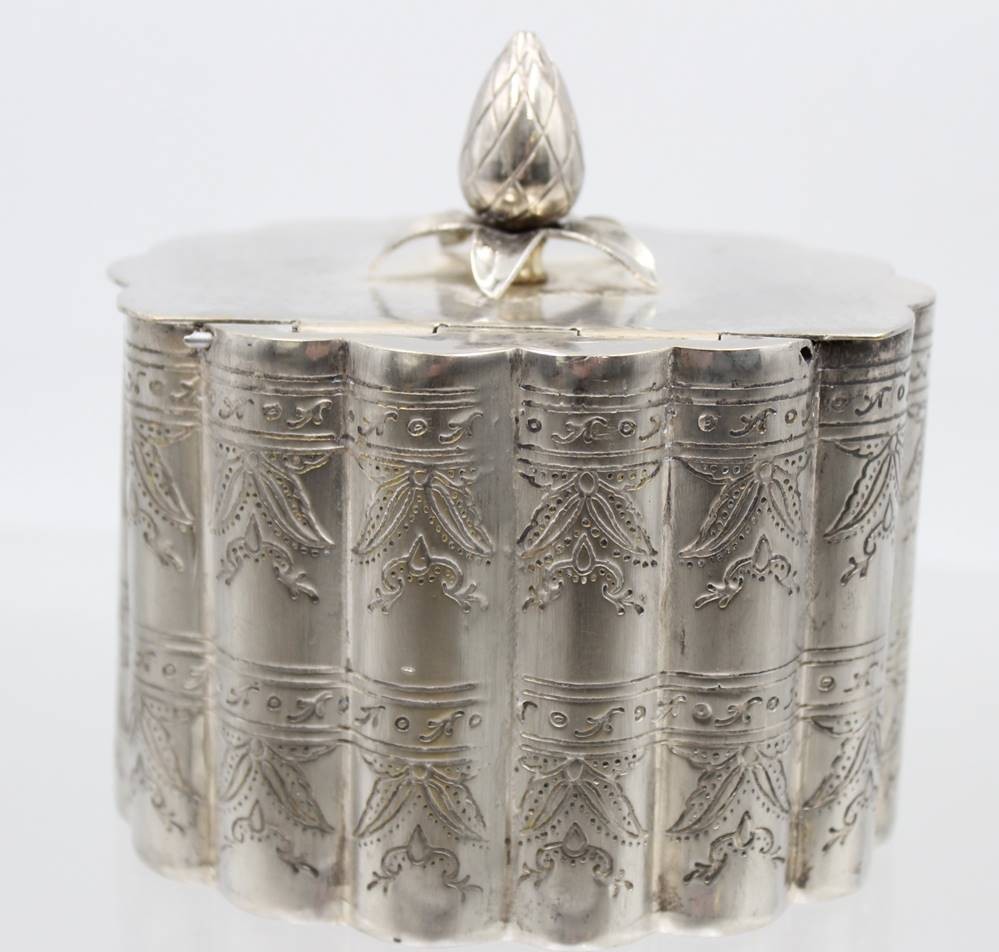 Zierdose, versilbert, ca. H-11cm B-11cm. [1]