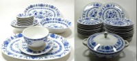 Umfangreiches Service mit Zwiebelmuster von Winterling, echt Kobalt, 4 Platten, Terrine, Sauciere, 3 Schüsseln, je 12 tiefe und flache Teller, 10 kleine Schalen, Ø runde Platte: 31 cm, 1 x Teller mit kleinem Chip, sonst sehr guter Zustand