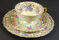 Schale auf Standring, Blumendekor, Pseudo-Blaumarke, H-6 cm, D-25 cm
