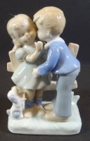 Konfektdose mit Goldstaffage und Raubkatzenfigur, H. 11,5 cm, L. 15 cm, Goldfarbe stellenweise abgerieben, Reparaturstellen am Schwanz der Katze, Boden mit Nummer