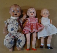 3x kl. Püppchen, Celluloid, alle mit Rückenmarke, 1x davon Schildkröt