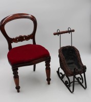 Puppenstuhl und kl. Puppen-Schlitten, Stuhl H-43cm , Schlitten H-30cm.