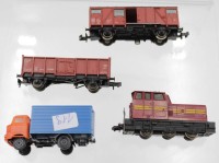 Diesellok u . 2 Waggons, Trix, Spur N, Funktion nicht geprüft, anbei Kunststoff-LKW