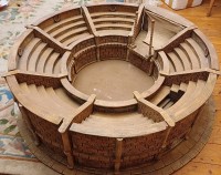 Rarität-grosses Kolosseum von Elastolin/Hauser, D-ca. 100 cm, H-ca. 24 cm, anbei ca. 10 Mauerteile einzeln, auch von Elastolin, ohne Römer-Figuren