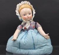 Teepuppe, Masse, div. Beschädigungen, wohl 50er Jahre, ca. H-30cm