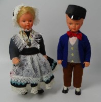 Konvolut kleiner Puppen in Trachten, teilweise mit Schlafaugen, H. ca. 18 - 29 cm, mit Altersspuren