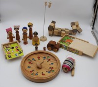 3x div. russische Holz-Spiele, Bären, Hasen Vögel, 1x bemalt, ca. H-11cm B-24cm