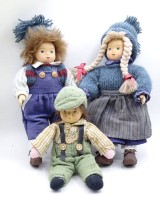 Auktion  / Los  <br>3x Püppchen, 2x Biege-Puppen, H-ca. 14 cm