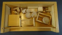 Auktion  / Los  <br>kl. alter Kinderkoffer mit 5 Handpuppen, Gummiköpfe