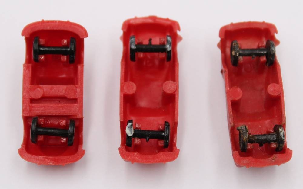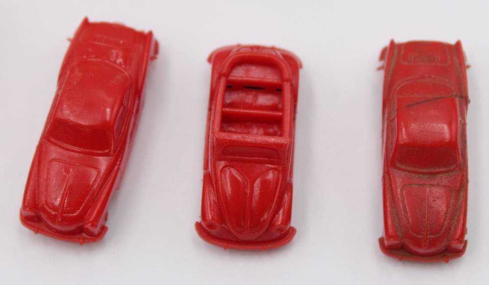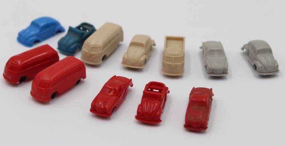 12x kl. Kunststoff-Modelle, wohl Margarine, älter, 1x ohne Räder [1]