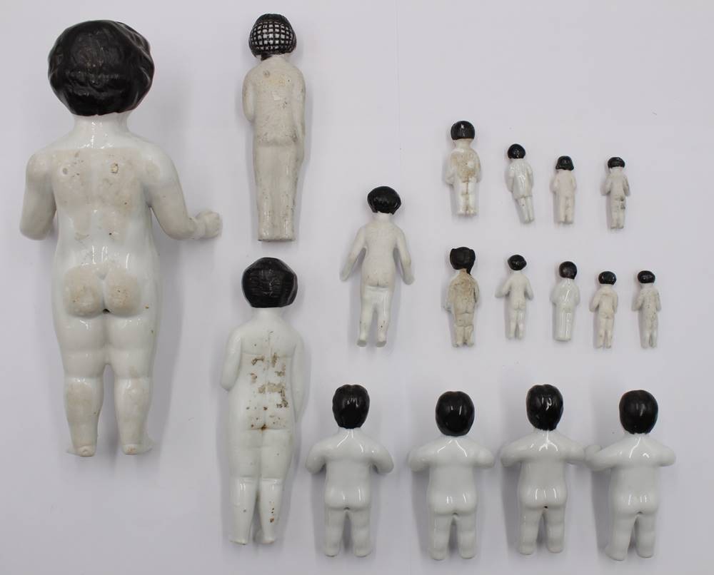 17xdiv. kleine Badepuppen aus Porzellan, von 3,5 bis 19 cm