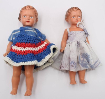 2 Schildkröt-Puppen, älter, ca. H-27 u. 24cm [1]
