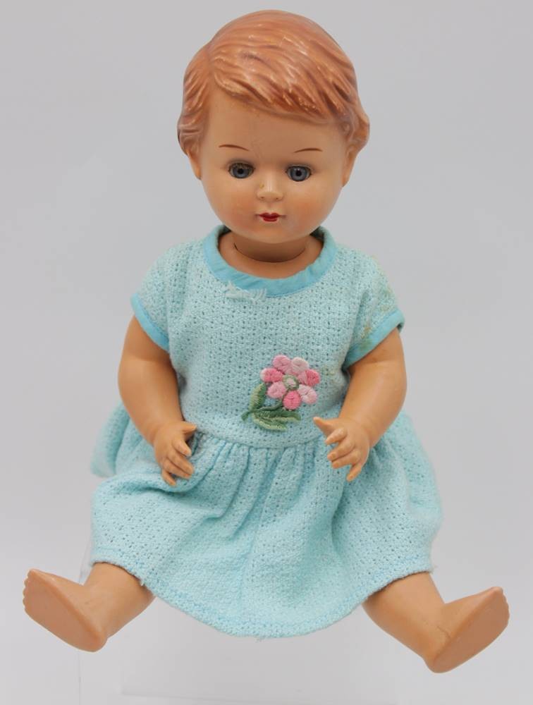 2x div. Mädchenpuppen, Minerva, Zelluloid, ca. H-34,5cm, Kopf und Körper gerissen und Mädchenpuppe, ungemarkt, älter, Mamastimme defekt, Körper gerissen, H-35cm. [1]