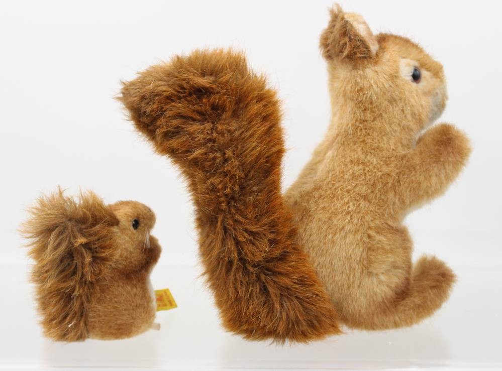 2x div. Steiff Eichhörnchen, Kecki und Nikki, Größtes H-20,5cm