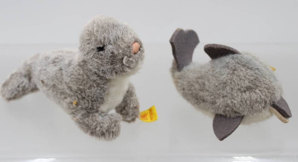 2x div. Steiff-Tiere, Robbe Nr. 1473/09 und Delphin Nr. 1472/07