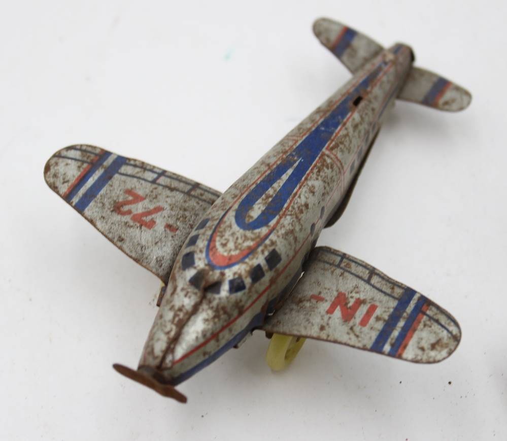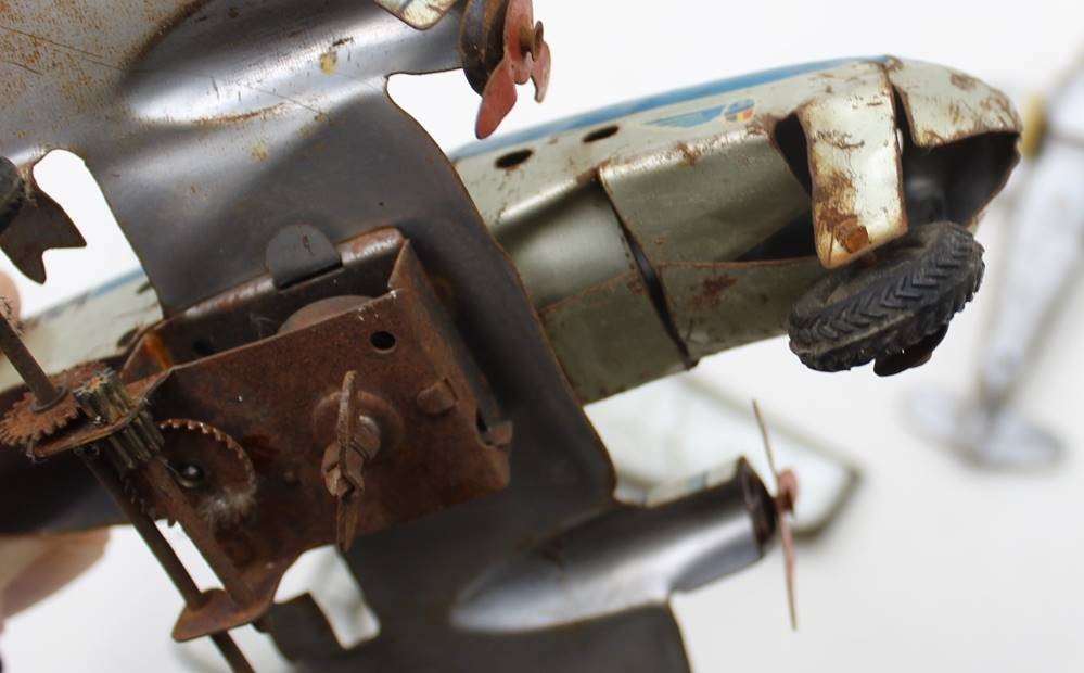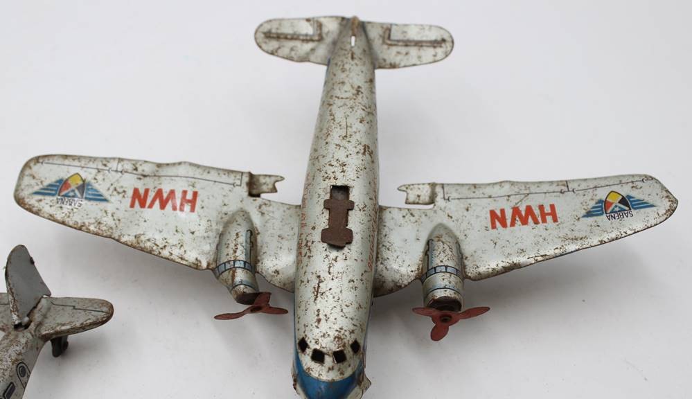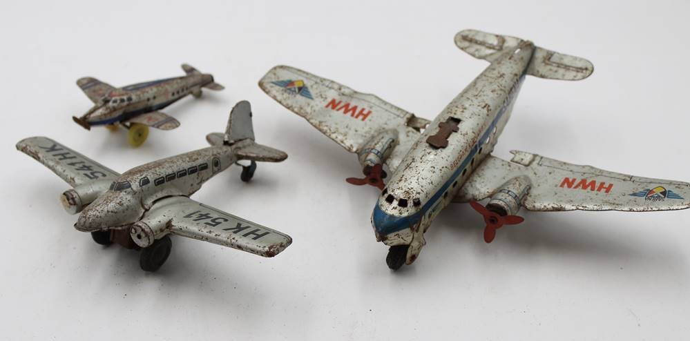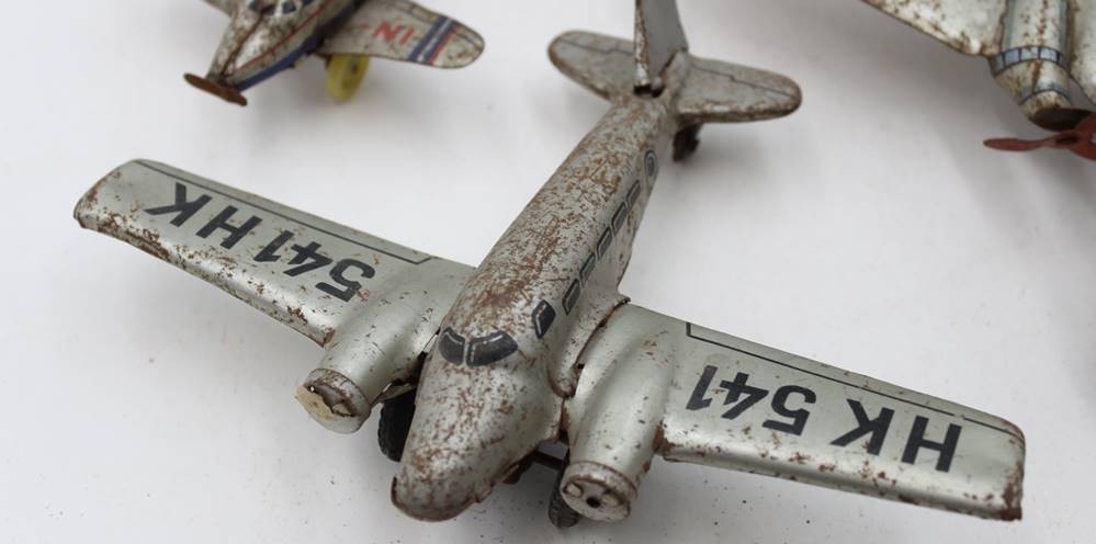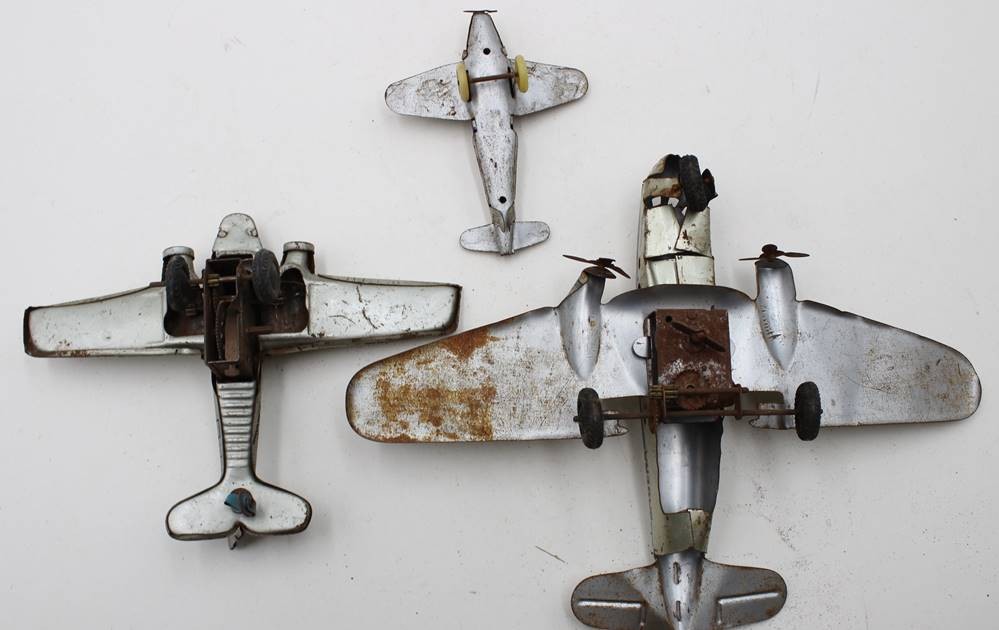 3x div. Blech-Flugzeugmodelle, stark bespielter Erhaltungen, Größtes ca. 18,5 x 24,5cm [1]