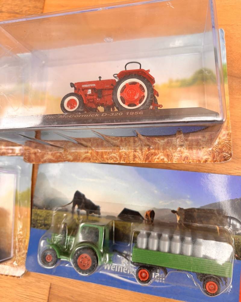 4x div. Traktoren Modelle, neu in Blister, 3x von Hachette, 1:43