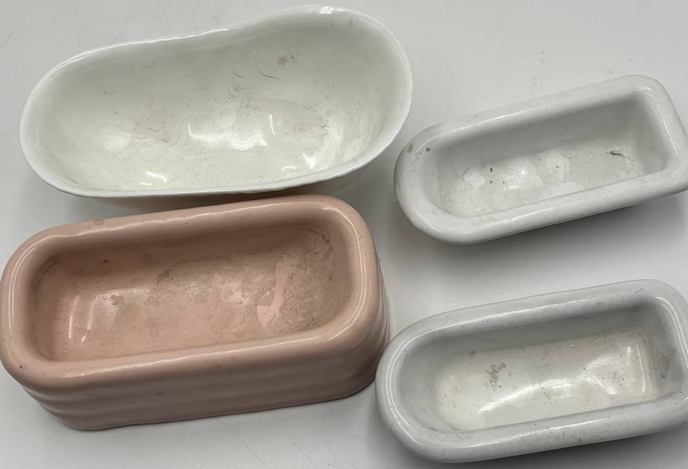 4xd Puppen-Badewannen, 1x Porzellan, 3x Metall emailliert, L-11 bis 15 cm [1]