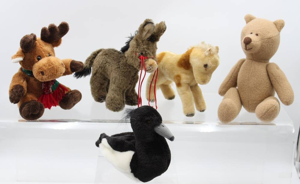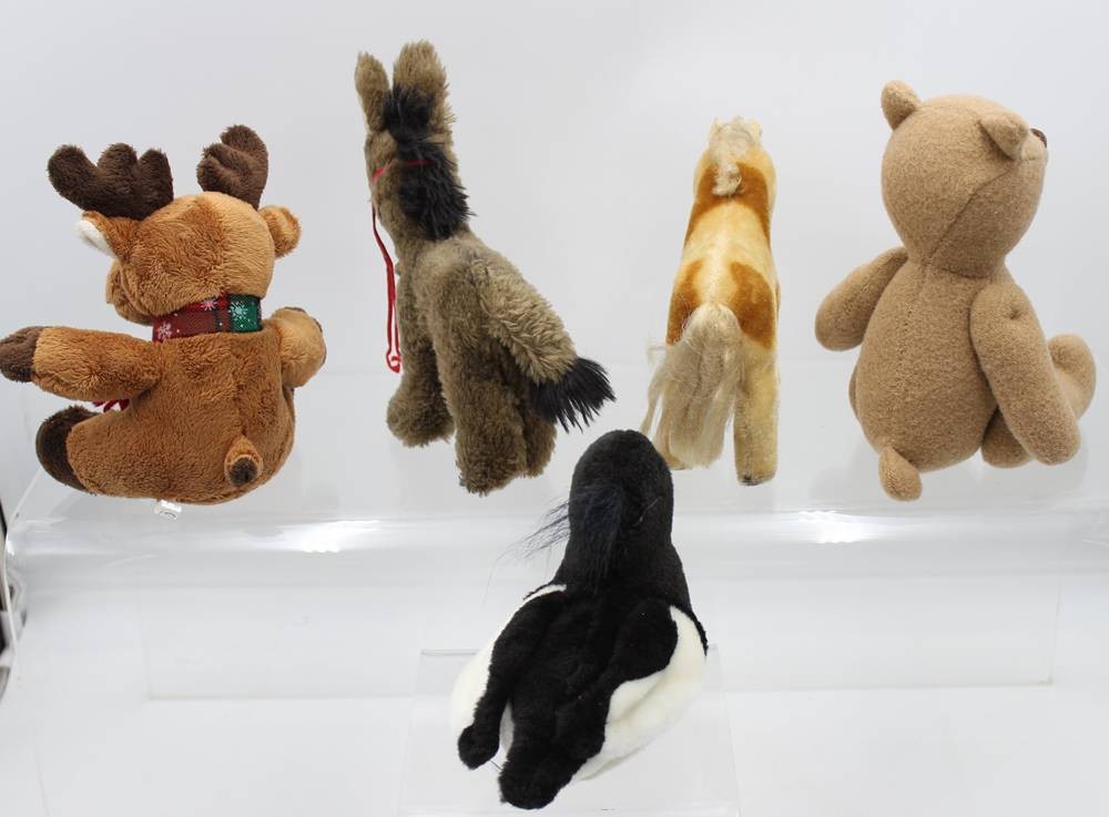 5x div. Stofftiere, teiwl. bespielte Erhatung, ca. H- 27cm [1]