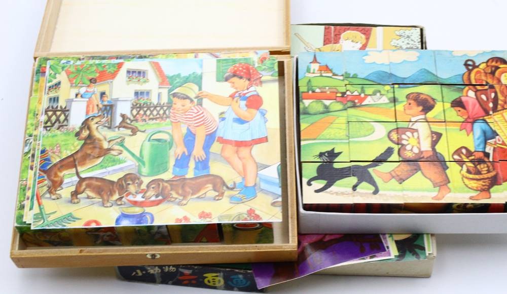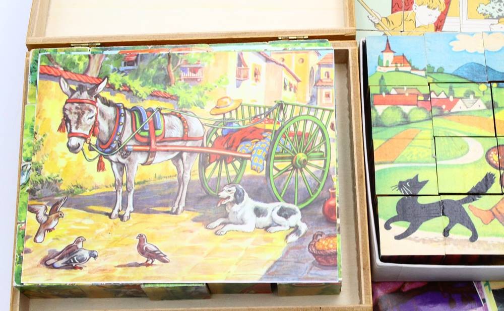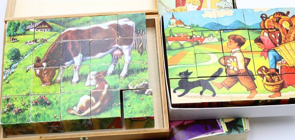 5x Kinder Puzzle-Klötze etc., Eichhorn in Holzkasten etc., [1]