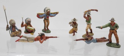 8x Elastolin-Figuren, Cowboys und Indianer, älter, teilw. beschädigt, ca. H-7,5cm [1]