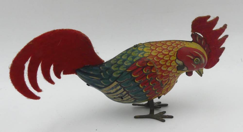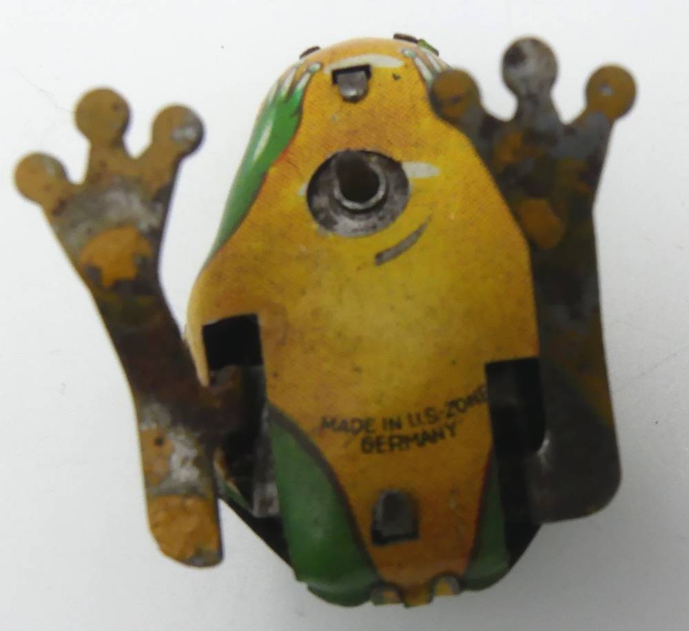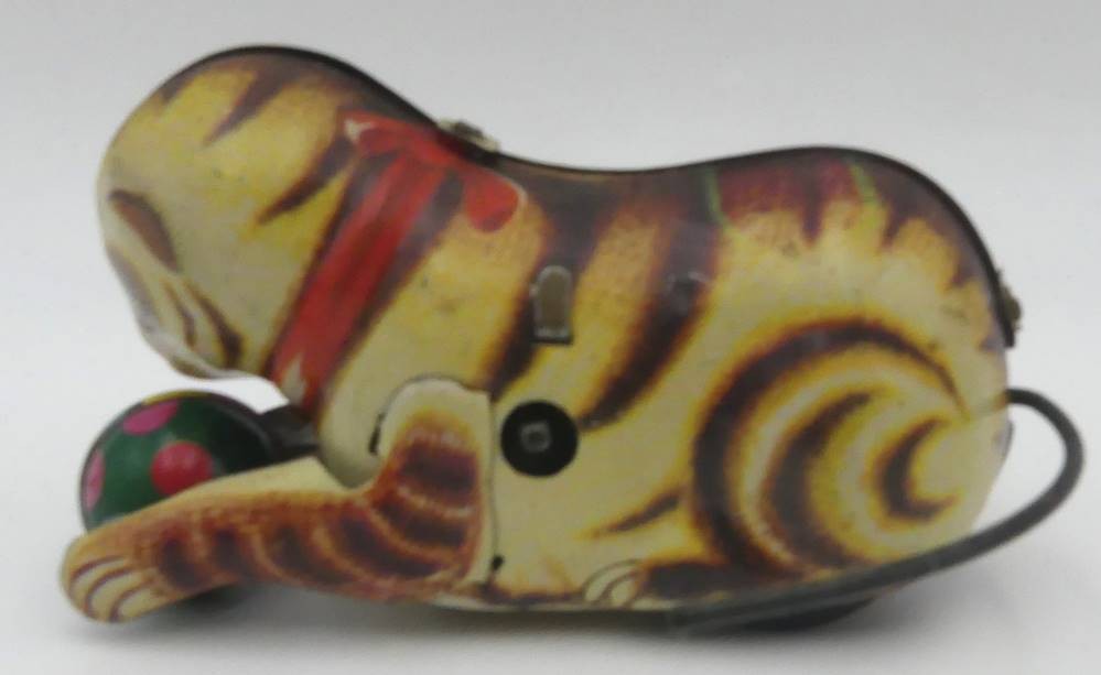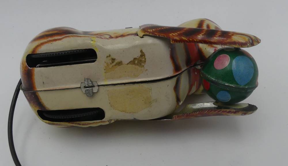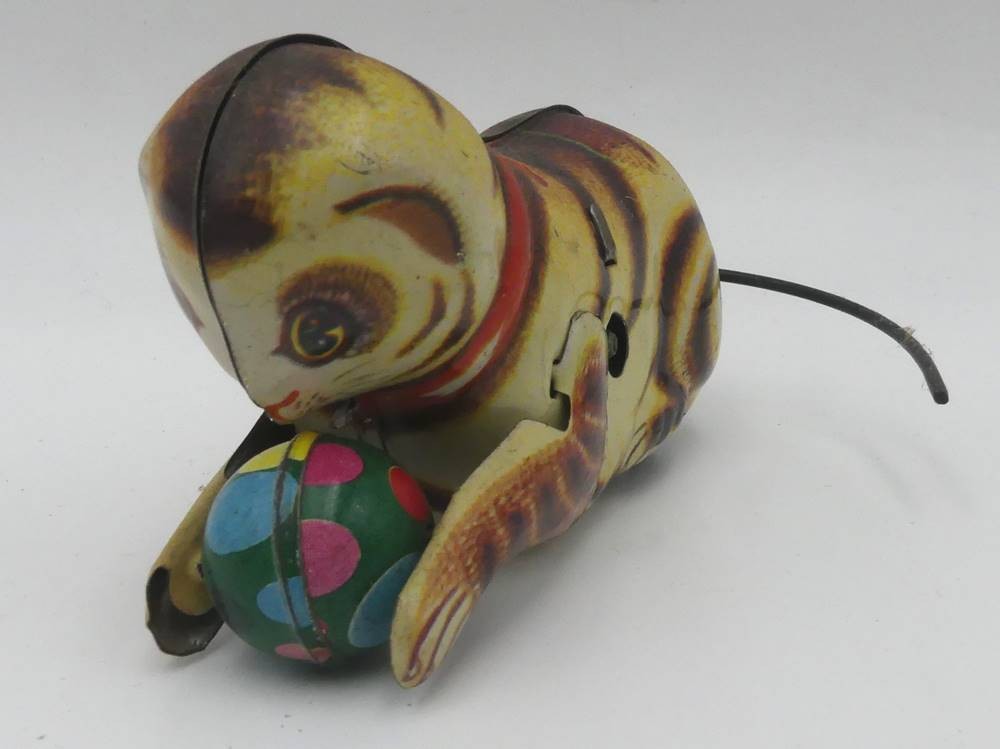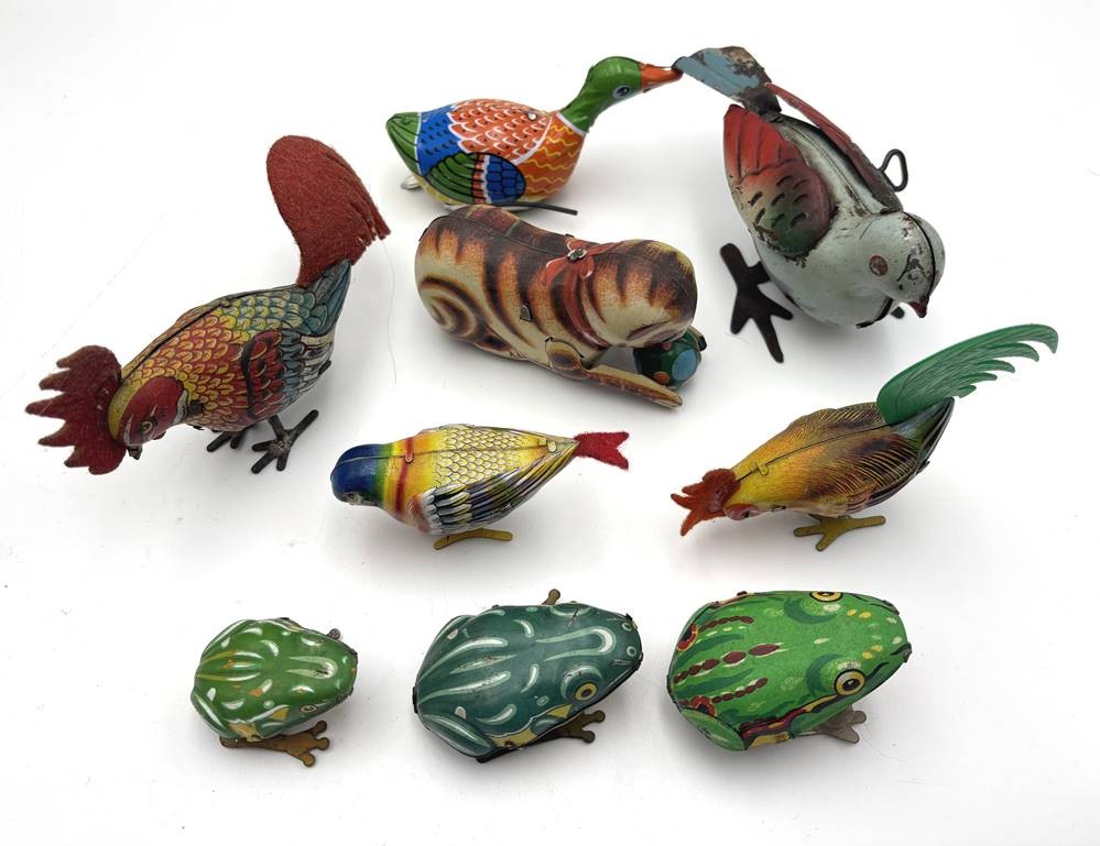 9x div. Blechspielzeug, Katze mit Ball, Pickhühner, Springfrösche etc., alle funktionieren, aber tw. Altersspuren, bespielt [1]