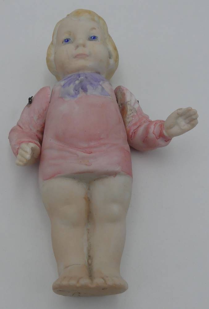 alte Bisquit Porzellan Puppe, bemalt, H-16,5 cm [1]