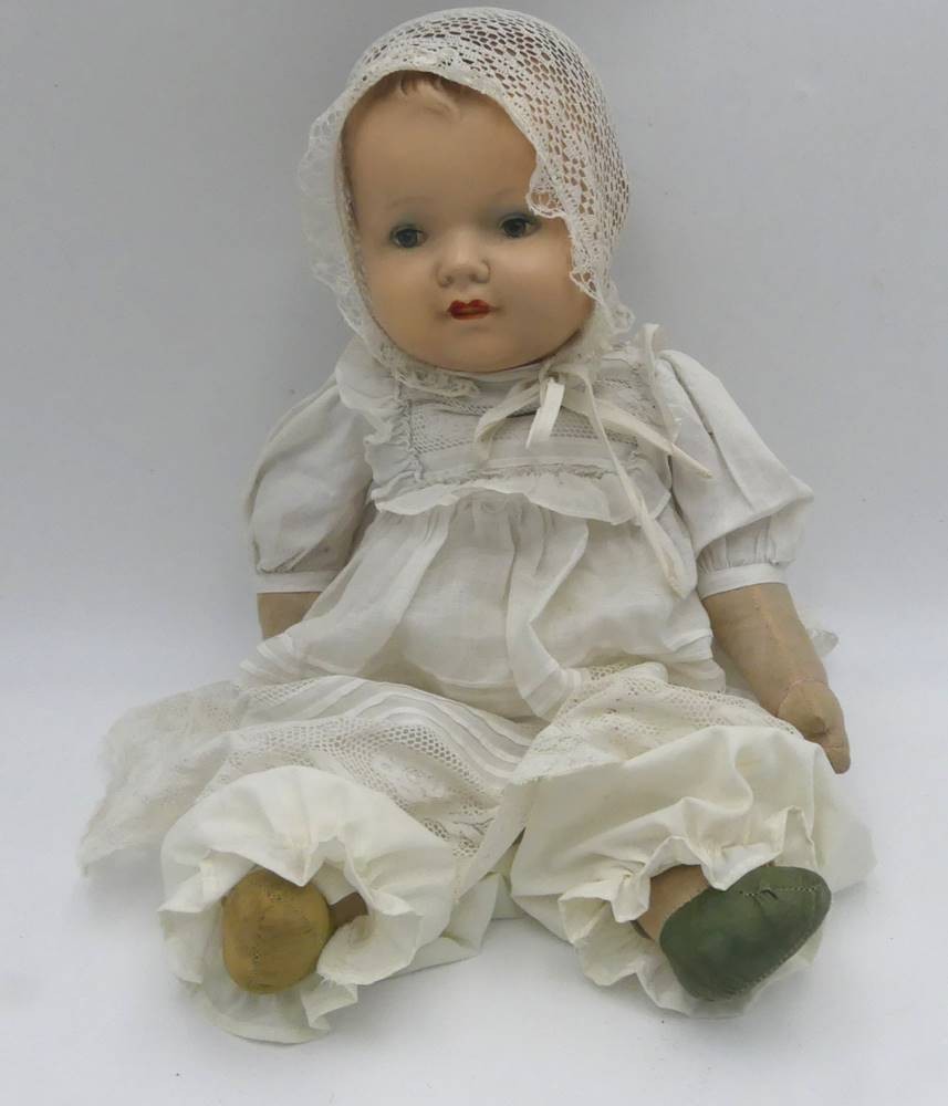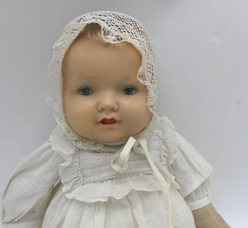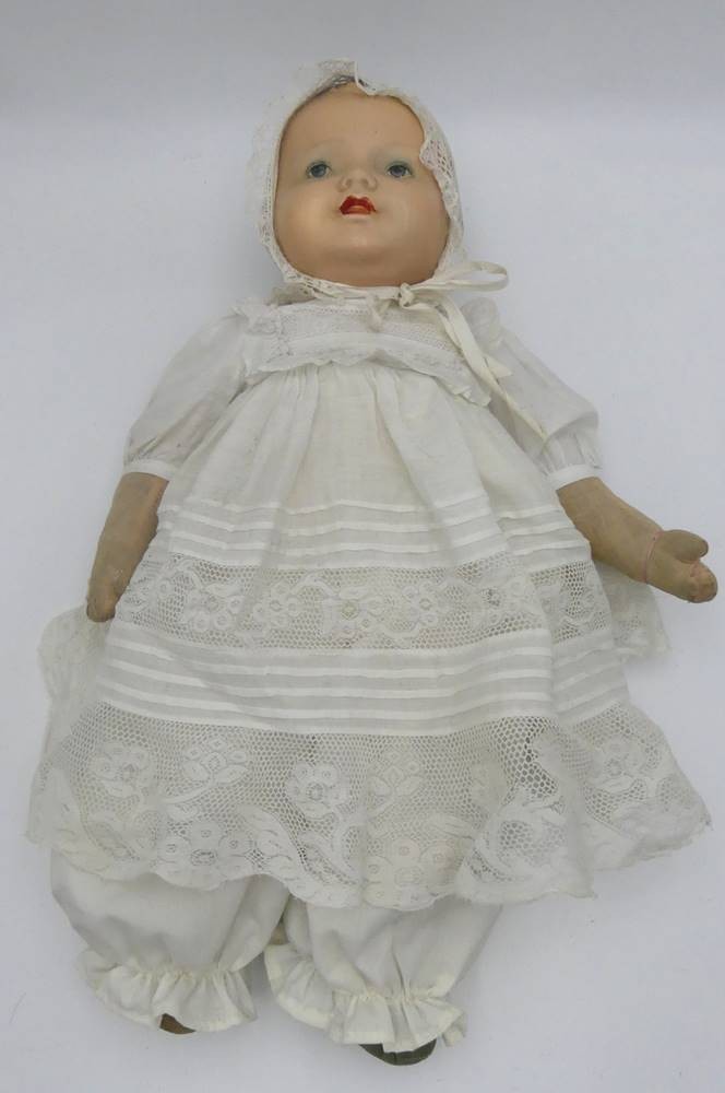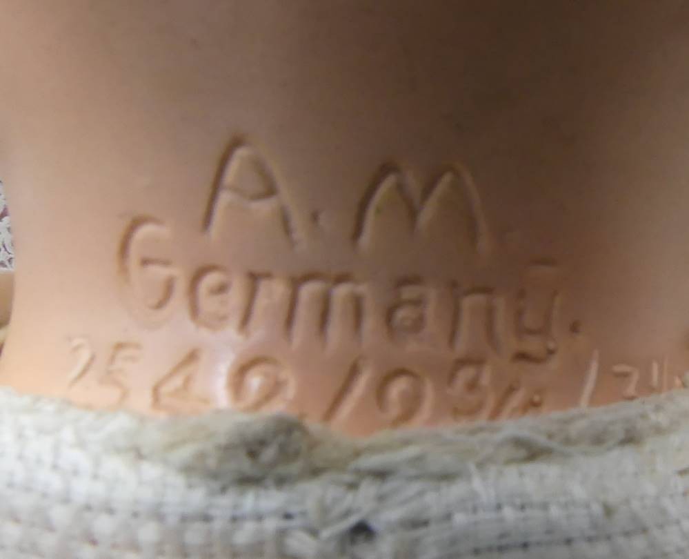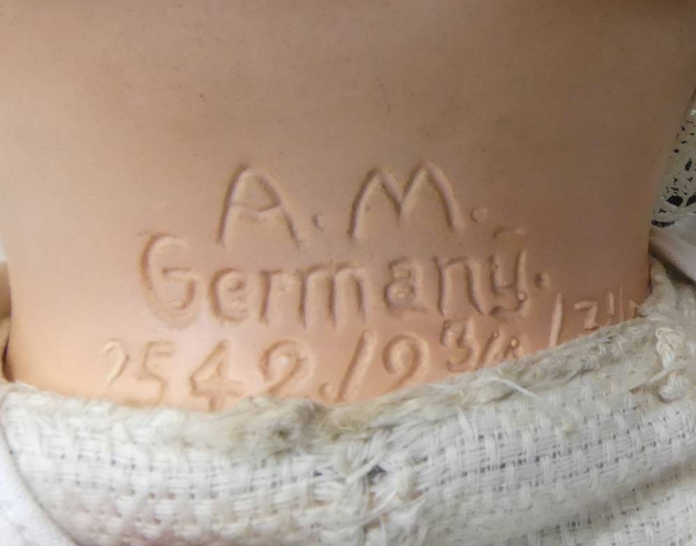 Babypuppe mit Porzellankopf "Armand Marsaille, Nr. 2542/.., Stoffkörper, H-39 cm [1]