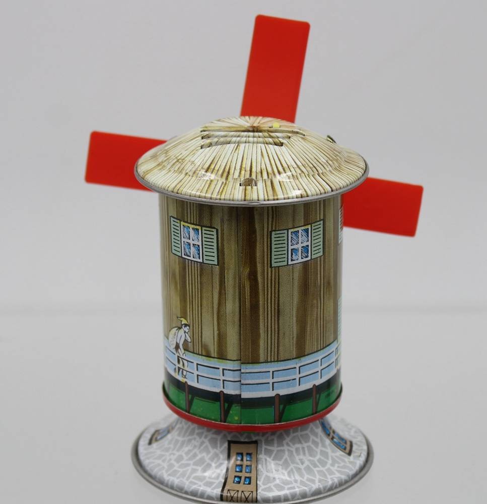 Blechspardose in Mühlenform, Lorenz, guter Zustand, ohne Schlüssel, ca. H-10,5cm [1]