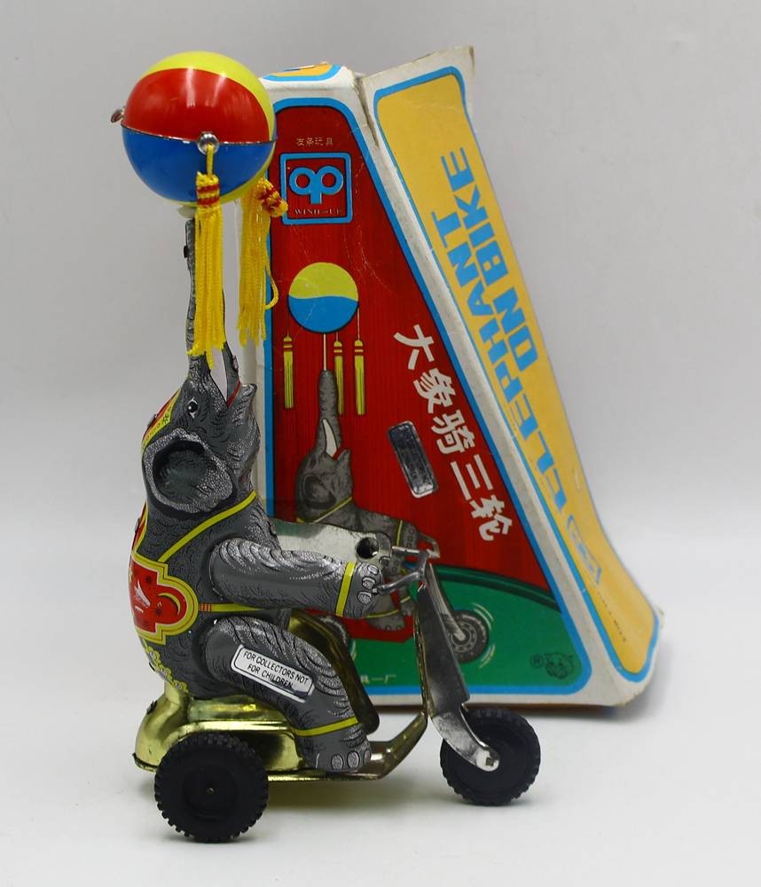 Blechspielzeug "Elephant on bike" Chine, in OVP, H mit Ball -ca. 26 cm [1]