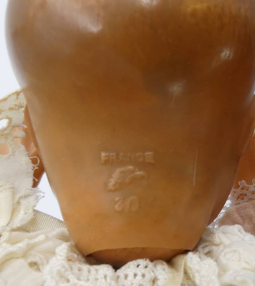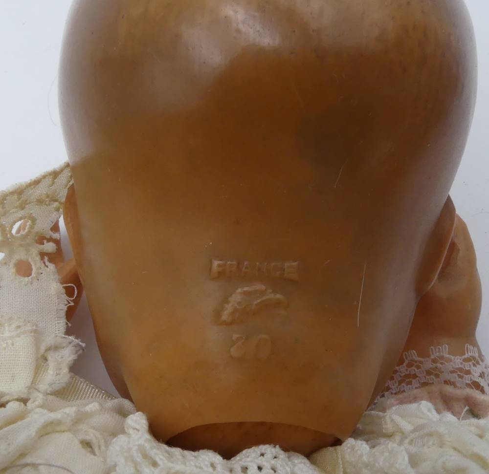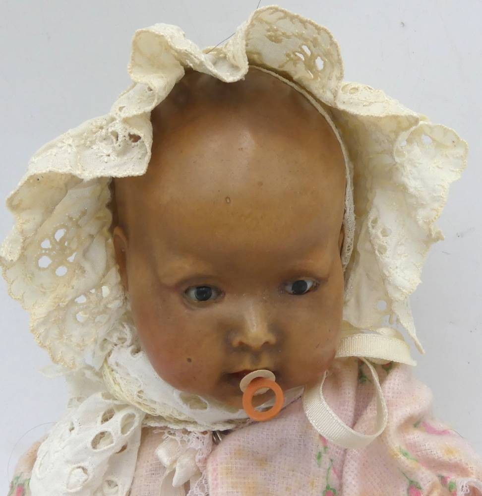 Celluloid Babypuppe "Petitcollin", France, Adlerkopfmarke, H-28 cm [1]
