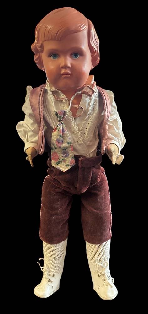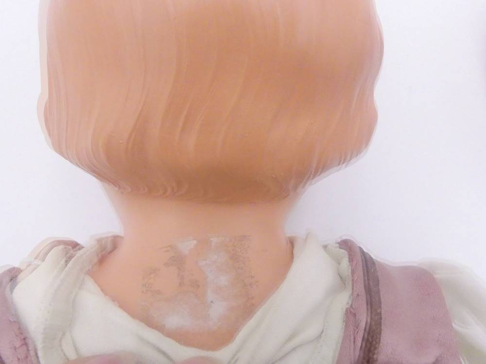 Celluloid Brustblattkopf-Puppe mit Stoffkörper, H-41 cm, guter Zustand [1]