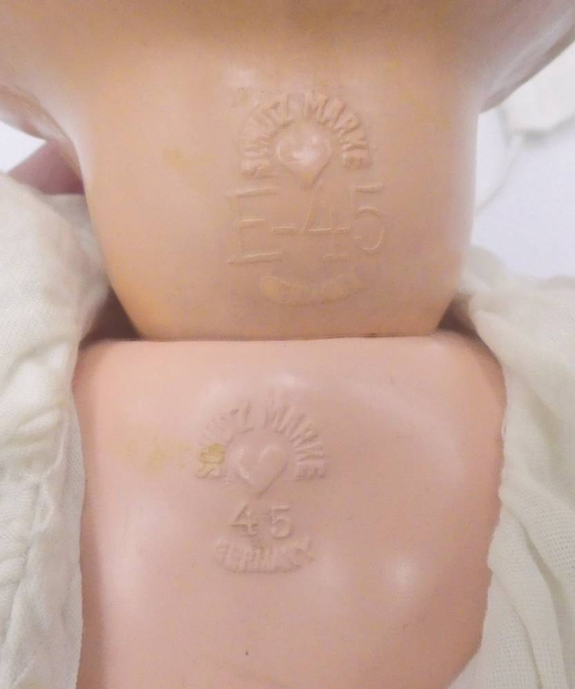 Celluloid-Mädchenpuppe "Bruno Schmidt" Halsmarke, H-44 cm, guter Zustand [1]