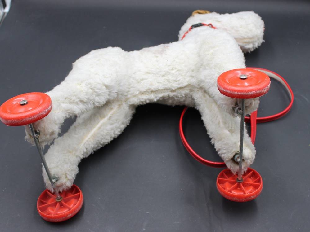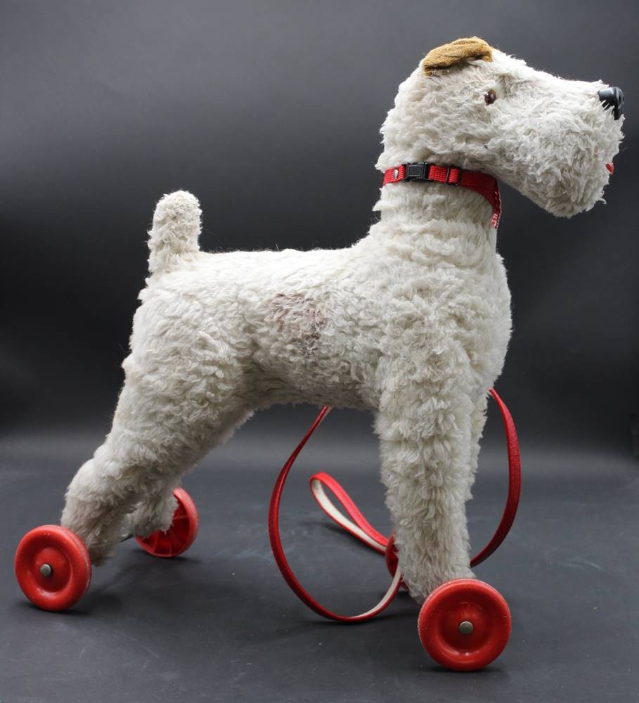 Foxterrier auf Rollen, 60/70er Jahre, bespielte Erhaltung, ca. H-48cm [1]