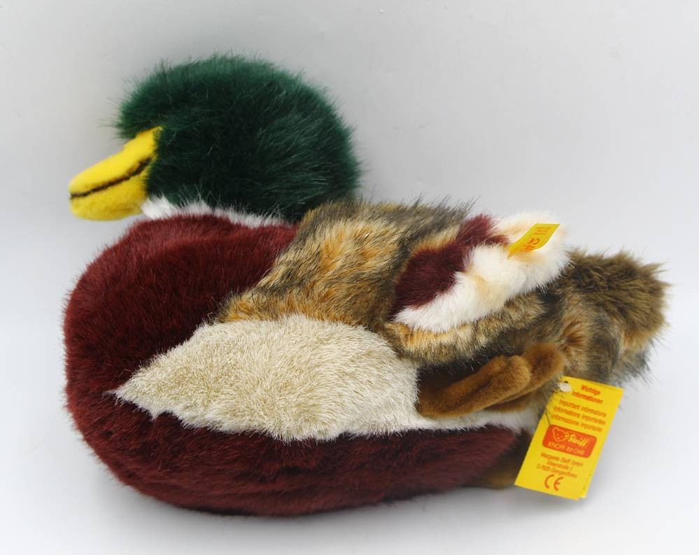 gr. Steiff Enten Erpel, komplett und mint, Nr.073670, L-36 cm, Druckstimme [1]
