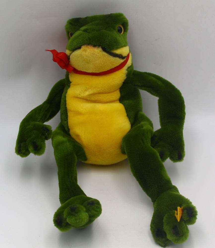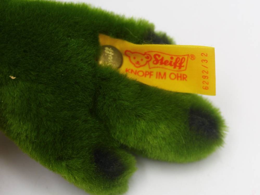 gr. Steiff Frosch, Knopf/Fahne und mint, Nr. 6292/32 [1]
