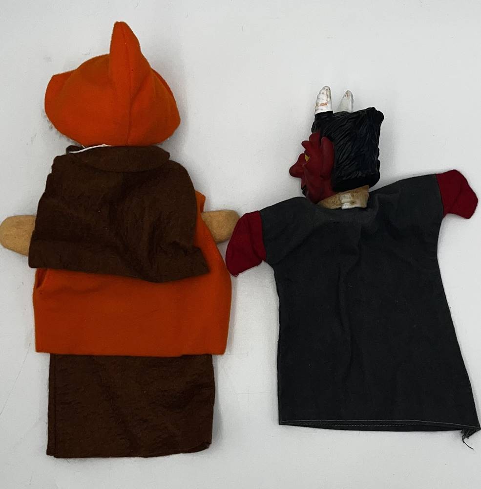 Handpuppen m. Gummikopf, 1x Sandmann & 1x Teufel, H: 37cm & 28cm