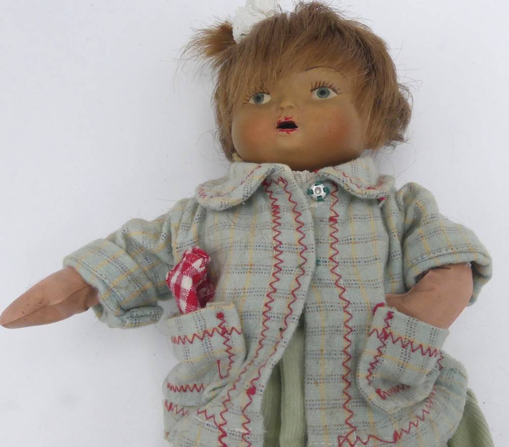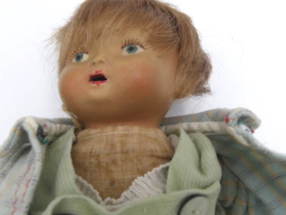 kl. Mädchenpuppe, unleserlich gemarkt, H-30 cm