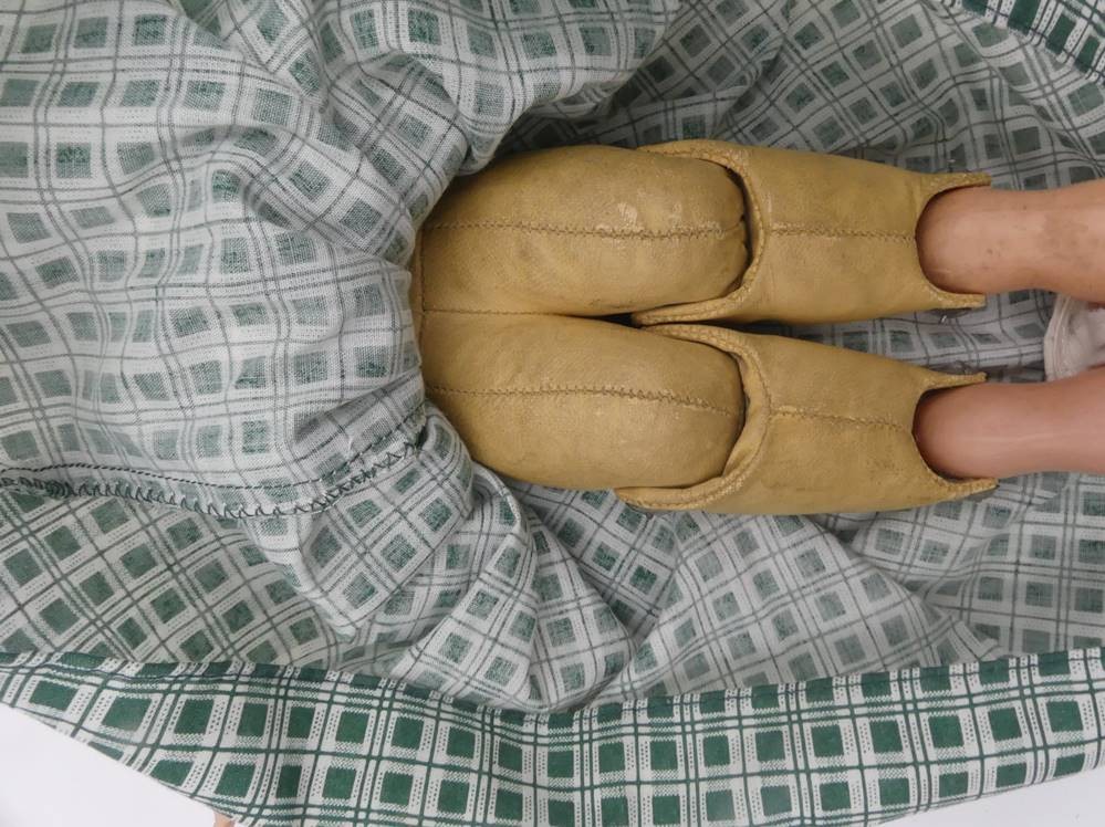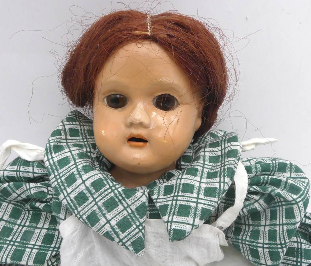 kl. Schildkröt Brustblattkopf-Puppe mit Lederkörper, H-32 cm