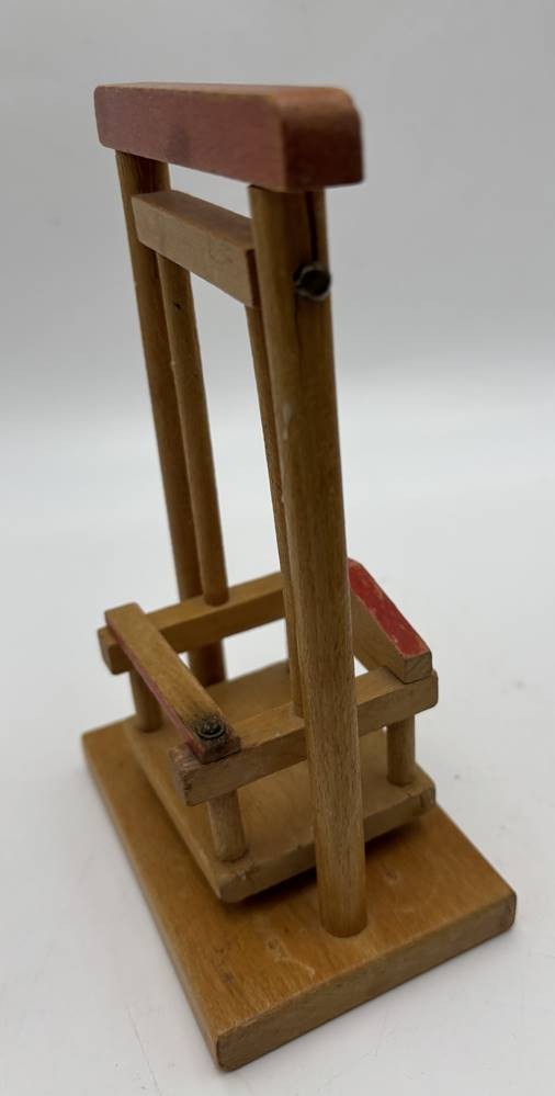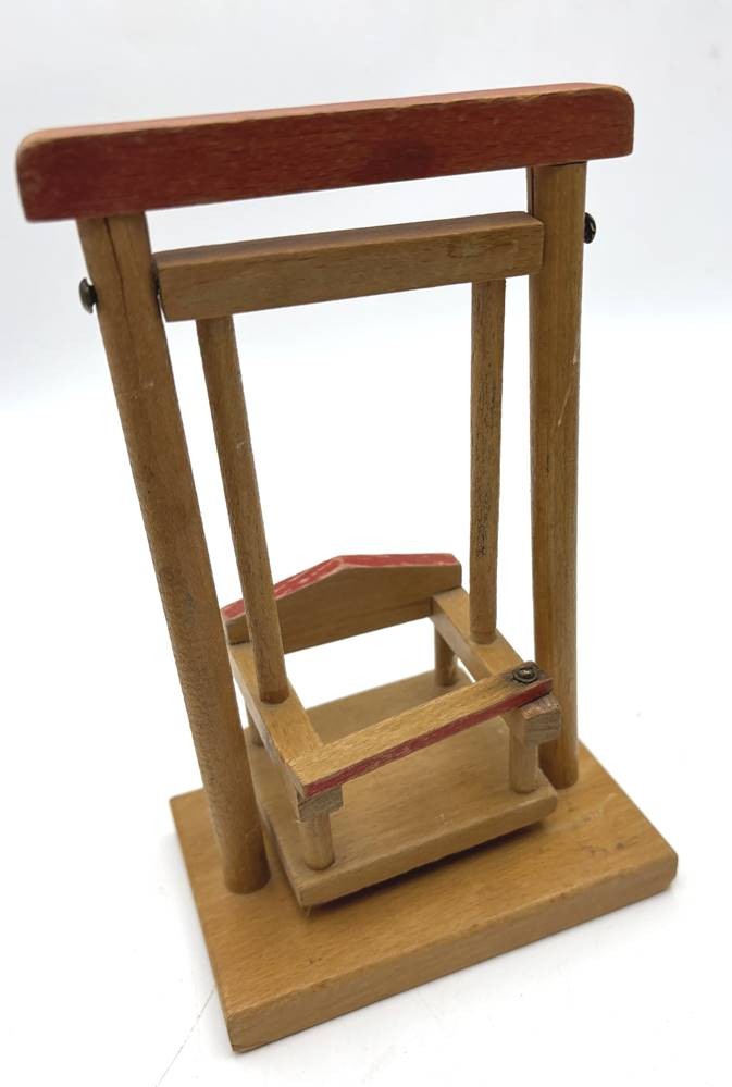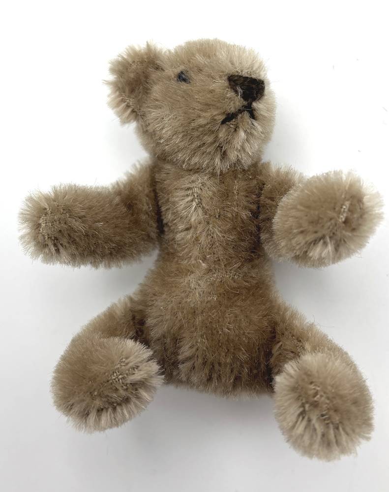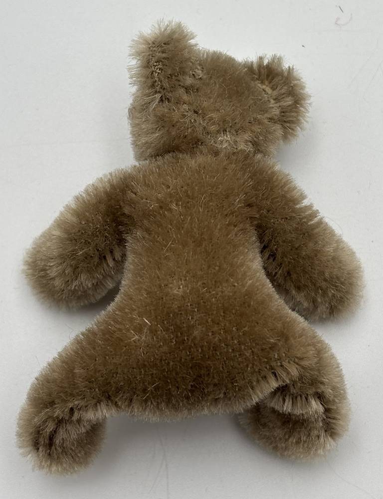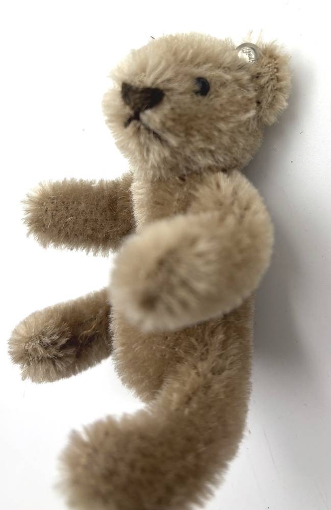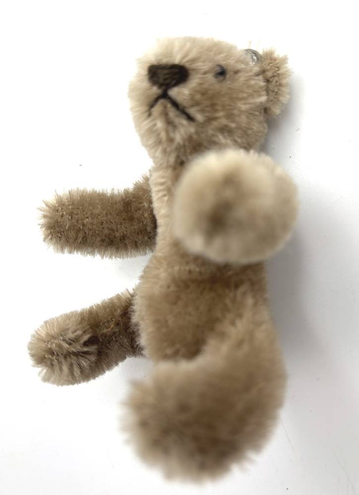 kl. vintage Sitzteddy von "Steiff", nur Knopf, Sitzhöhe 7 cm, mit Schaukel ,Holz-Handarbeit, H-18 cm, B-10,5 cm [1]